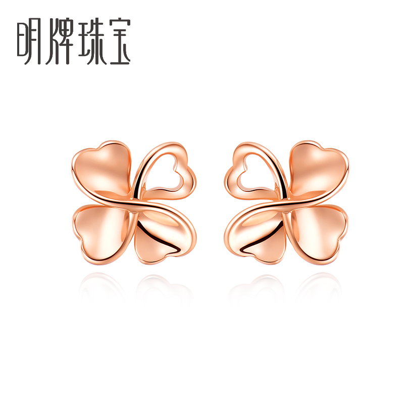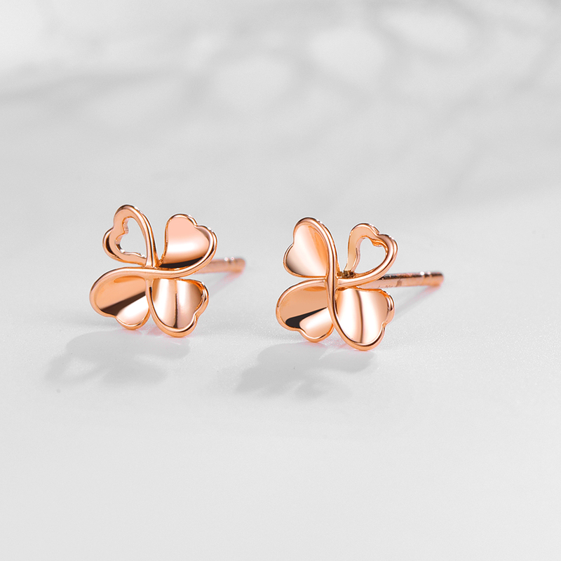Clear Jewelry 18K Gold Ear Needle Color Gold Rose Gold Four Leaves Grass Ear Nail Fashion Ear Insert Female Gift CSH0081