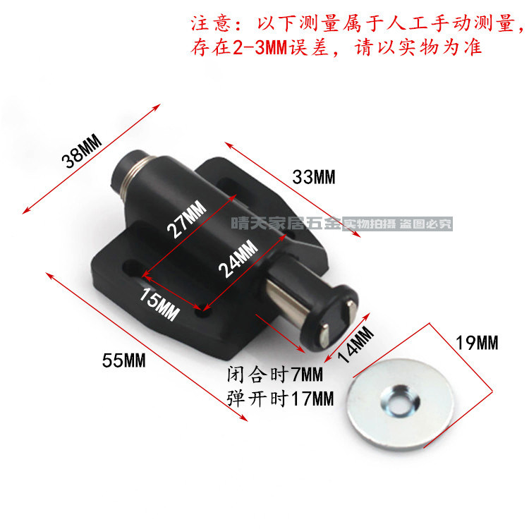 White and black invisible folding single and double door suction free installation handle press pop-up magnetic cabinet suction door collision rebounder