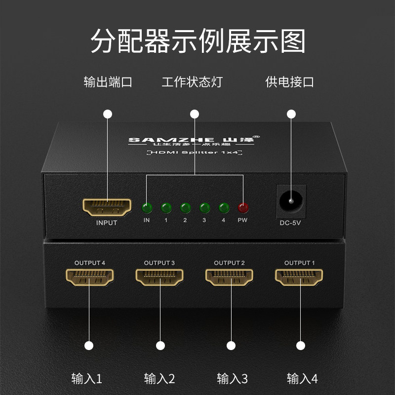 Sandze HDMI allocator 1 in 4 out 4 out 4K HD 1 in 4 video 1080P split screen 1 point