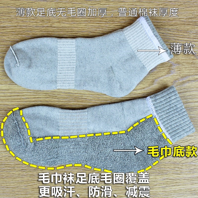 Sports socks thin thick bottom middle cylinder all cotton towels male socks wool circles thickened thin socks pure cotton deodorized optional beam waist