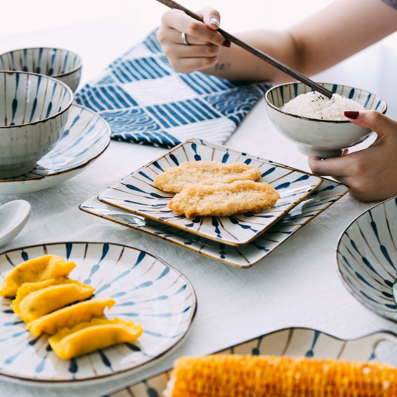 Sheri Japanese retro underglaze color ceramic household tableware rice bowl vegetable plate bowl dish soup bowl noodle bowl spoon
