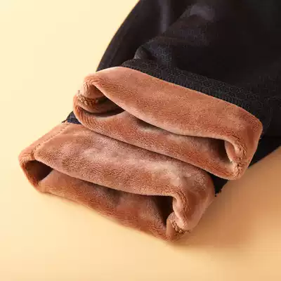 Winter warm pants men's high waist slim thickening and velvet knee pads cotton pants three layer thick windproof pants slim bottom