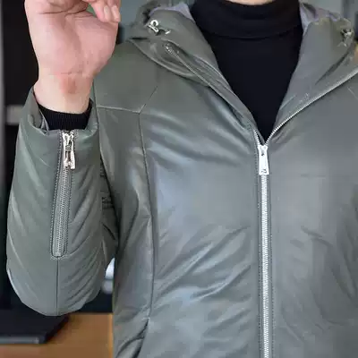 Autumn and winter Haining leather jacket down jacket men's white duck down jacket slim handsome sheepskin jacket tide