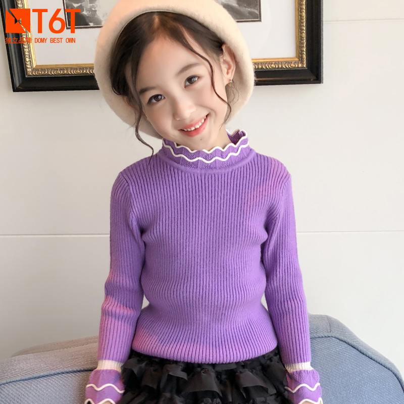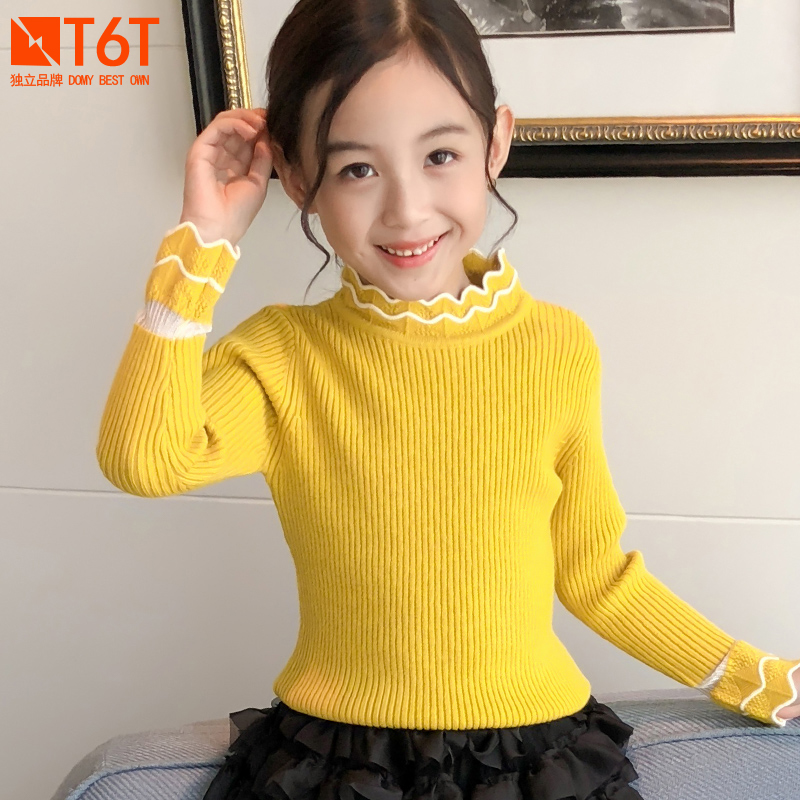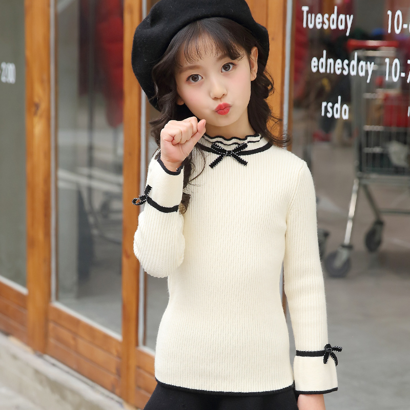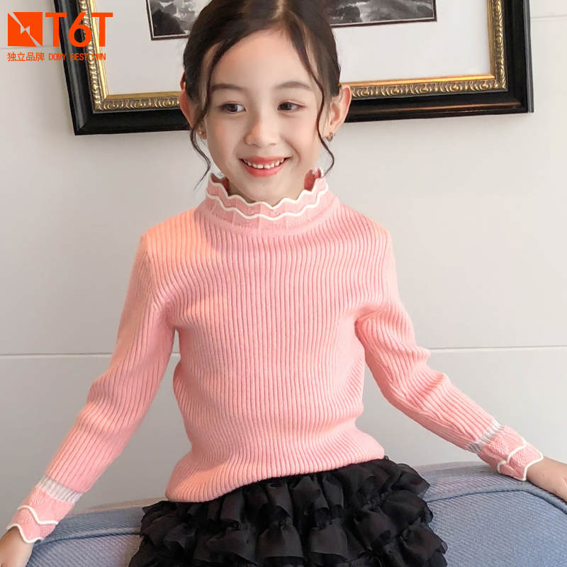 Girls knitted a red New Year's Sweater with high - collar plus thickened black 2023 new white