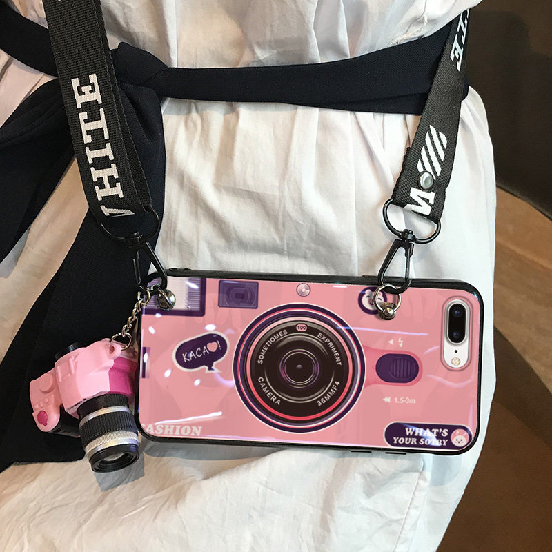 Net red same camera Apple 6splus mobile phone case iPhonex blue light hanging neck lanyard 8 mobile phone case 5s personality 7 soft silicone 6 all-inclusive anti-fall se men and women tide 7pl