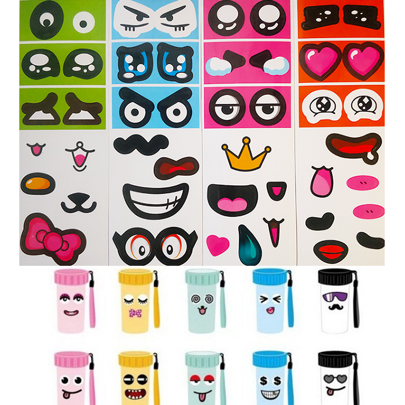 Cute Cartoon Expression Stickers Cups Stickers DIY Cuddler Fruit Expression Stickers Smiley Face Mesh Red same stickers