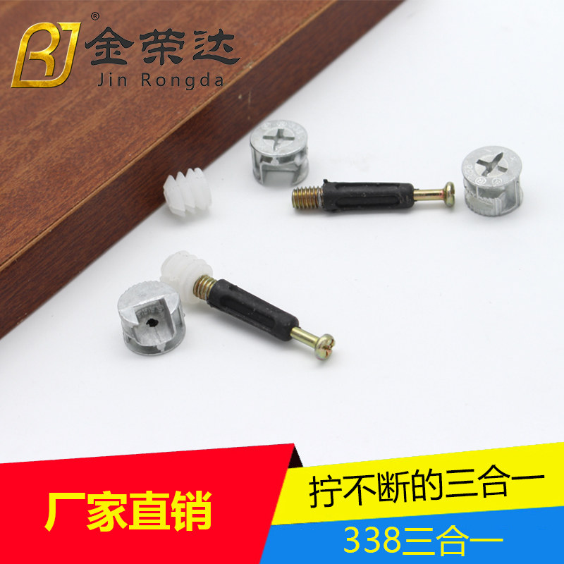 Golden Rongda thickened three-in-one connecting piece screw eccentric wheel iron nut connecting piece plastic pole pre-embedded furniture accessory