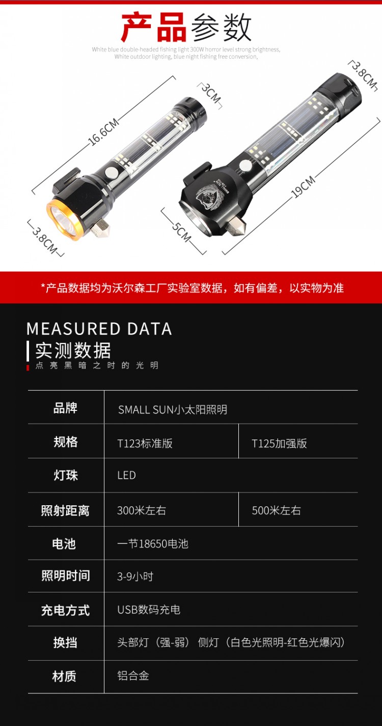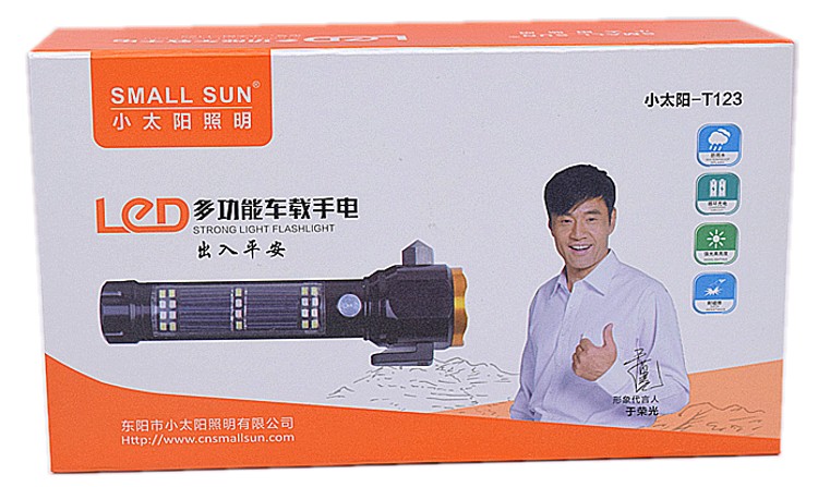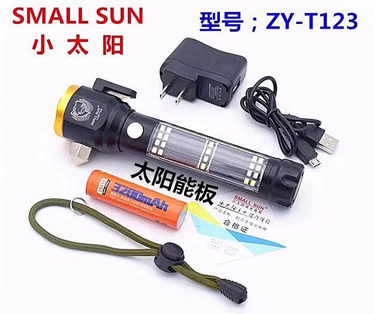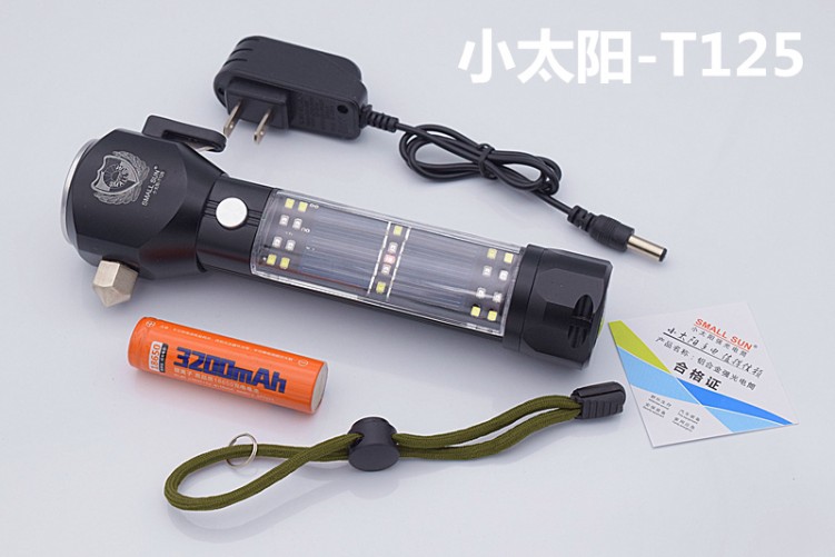 Small Sun T125 Solar flashlight Outdoor broken window Escape Lifesaving Hammer hiking Night Riding Cave Camping Light
