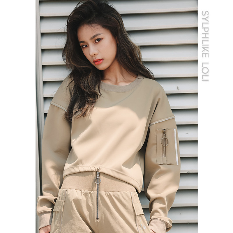 Rough Laurie Round - collar retro - sleeve long - sleeved trousers T spring coat female short fitness cover head