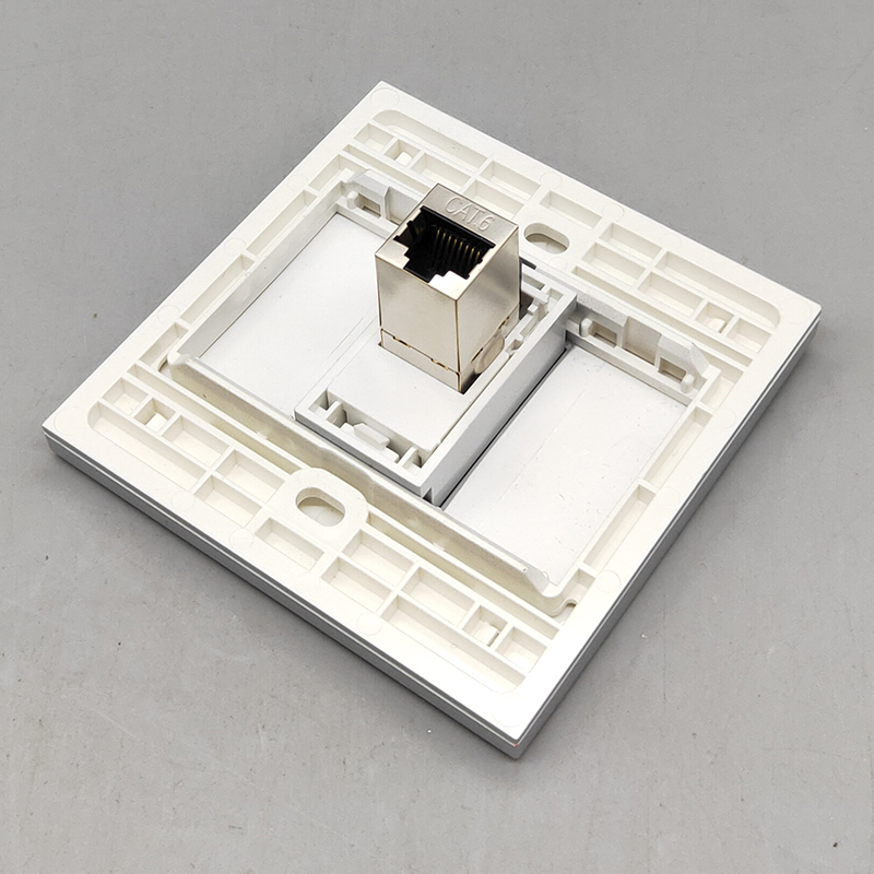Silver 86 type one six-type straight-through shielded network panel single-port CAT6 Gigabit computer network route socket broadband