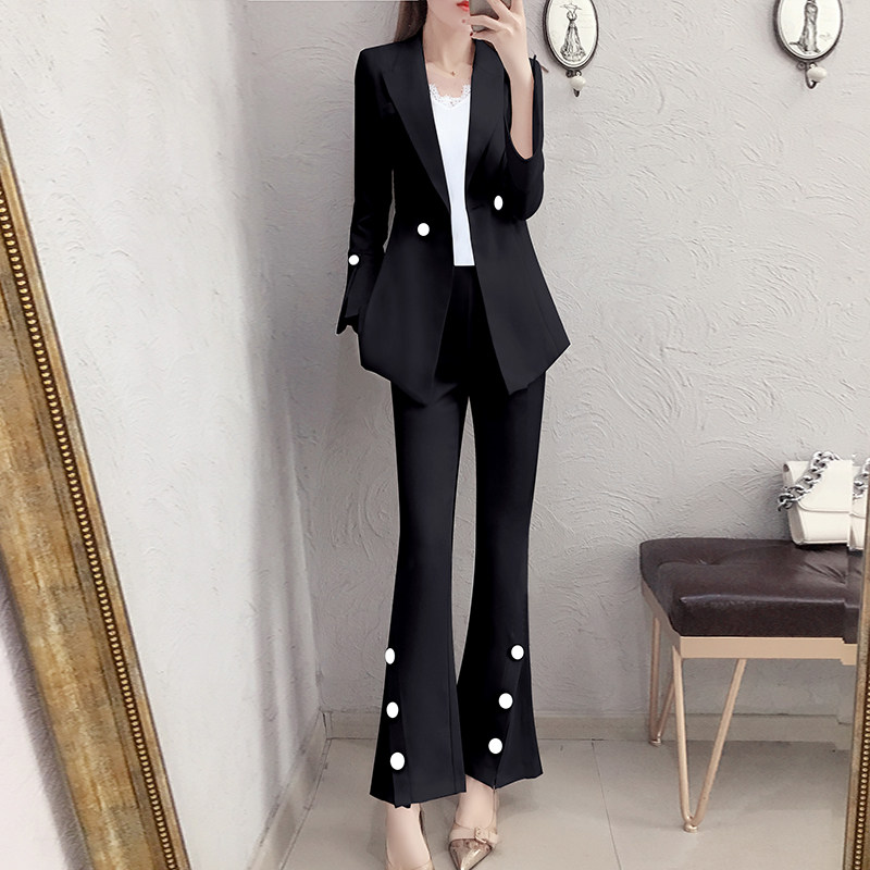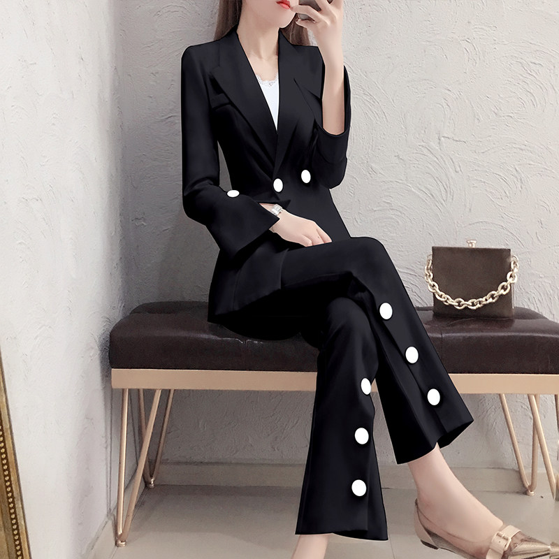 Spring aura strong professional black suit suit female 2023 new Korean version temperament British style two-piece suit