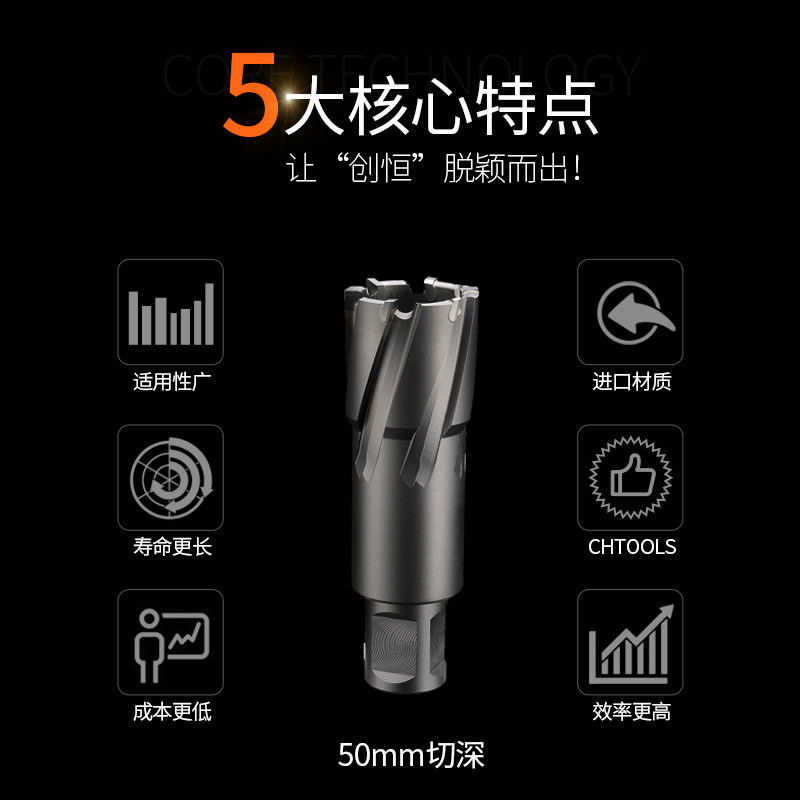 Hollow drill bit Drilling Chuangheng magnetic drill bit Steel plate drill 50 deep core drill Cemented carbide drill bit
