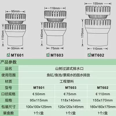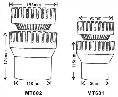 MT601 diameter 50mm MT602 caliber 110mm MT603 diameter 75mm