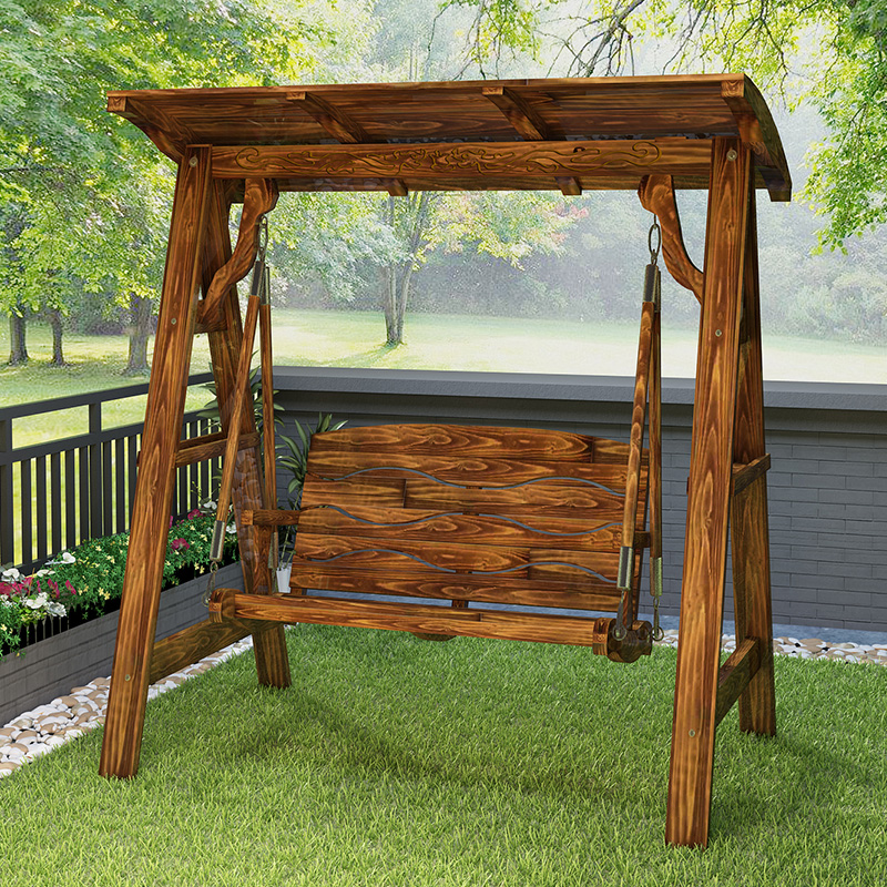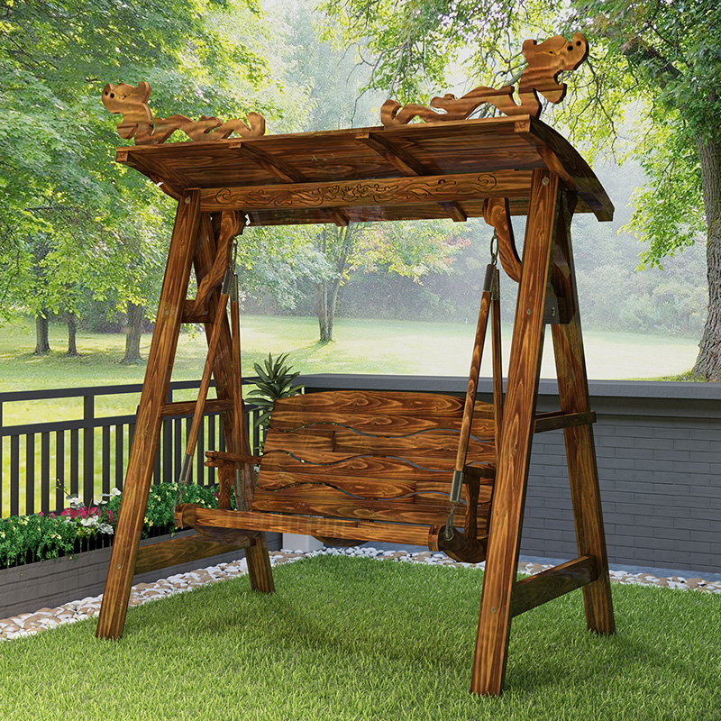 Outdoor children's swing art solid wood carbonization anti-corrosion wooden indoor courtyard single and double hanging chair cradle can be customized