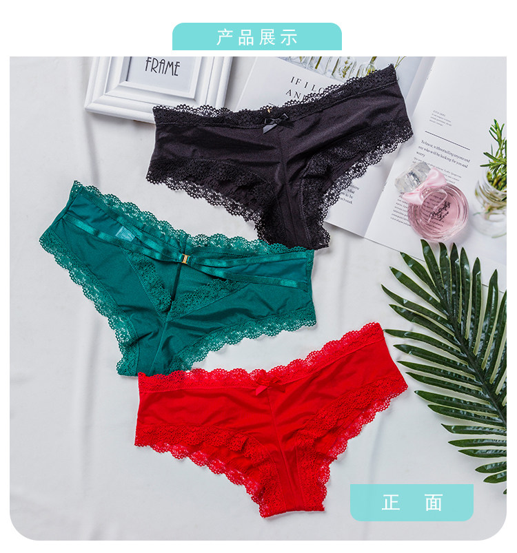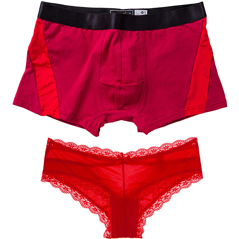 Sexy Couple Pants Suit Low Waist Hollowed-out Ice Silk Lace Lady Triangle Pants Pure Cotton Men's Four Corner Pants