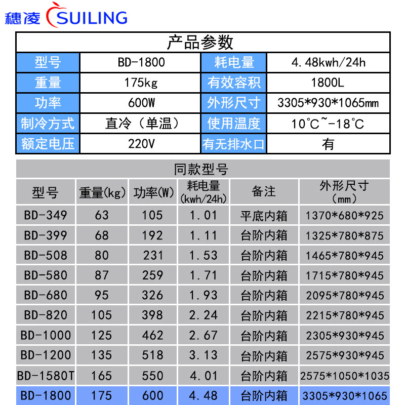 Sui Ling BD-1800 horizontal commercial large freezer freezer large seafood freezer ice cream freezer