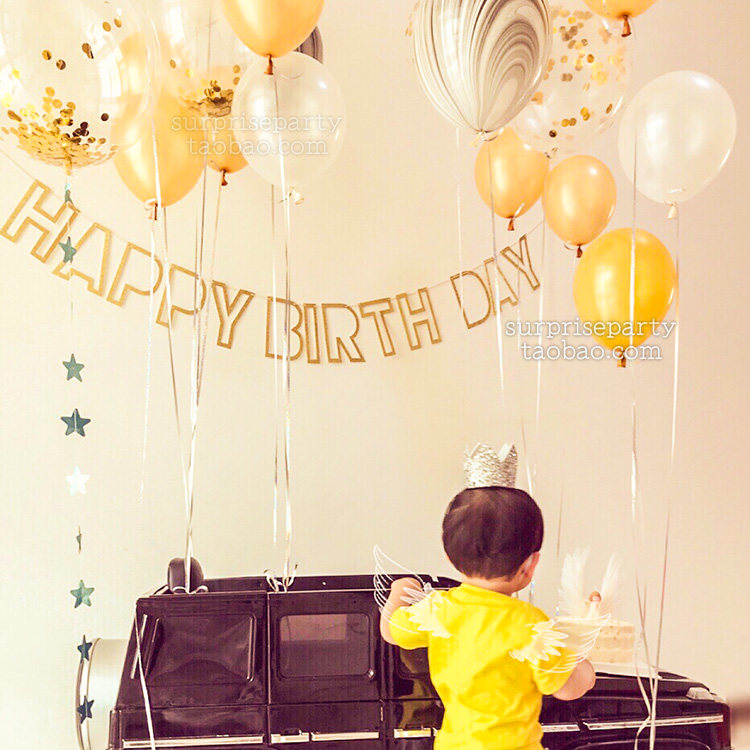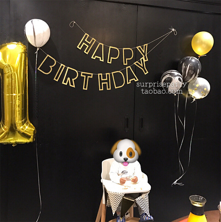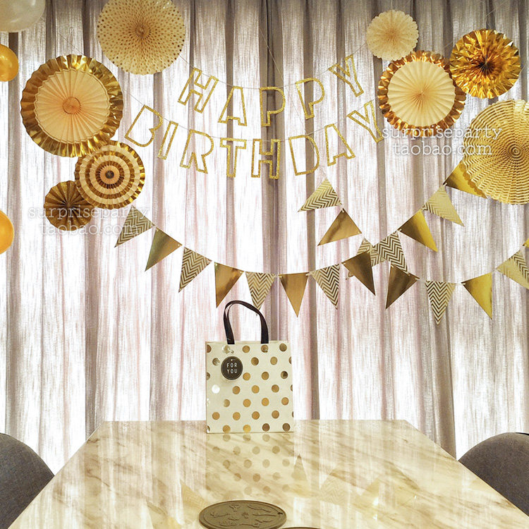 Golden hollowed-out birthday flag black grey gold triangular flag mirror size star hanging decoration