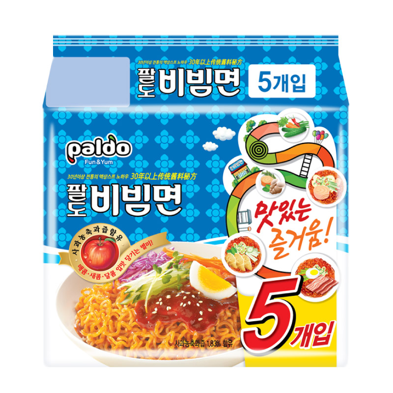 South Korean blister Eight-way Paldo apple cider vinegar cool mixed noodles 130g * 5 Imported Bubble Noodles Cold Noodles Bagged Quick Food