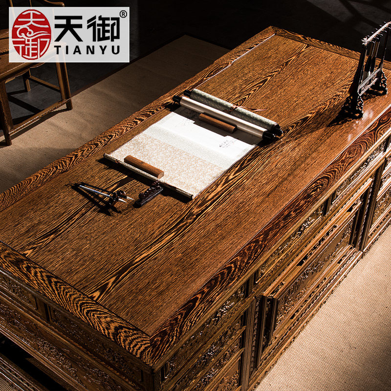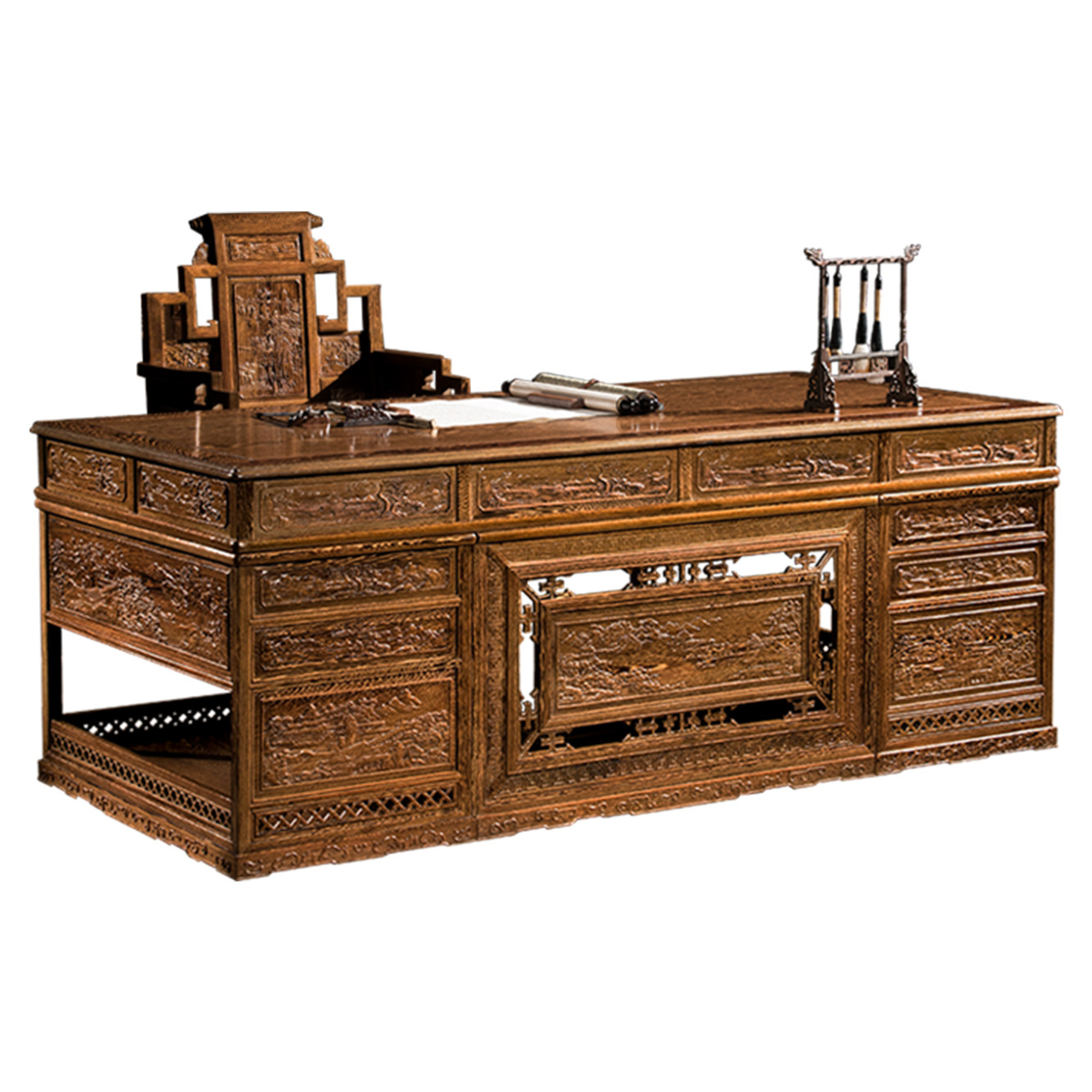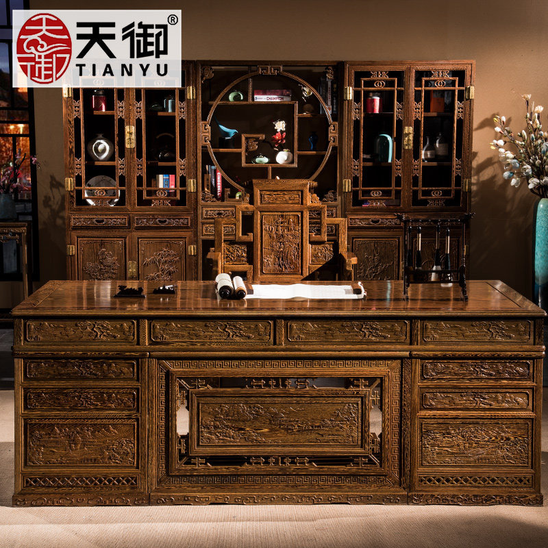 Chicken wing wood desk new Chinese style solid wood antique study desk boss table Bogu shelf bookcase mahogany desk