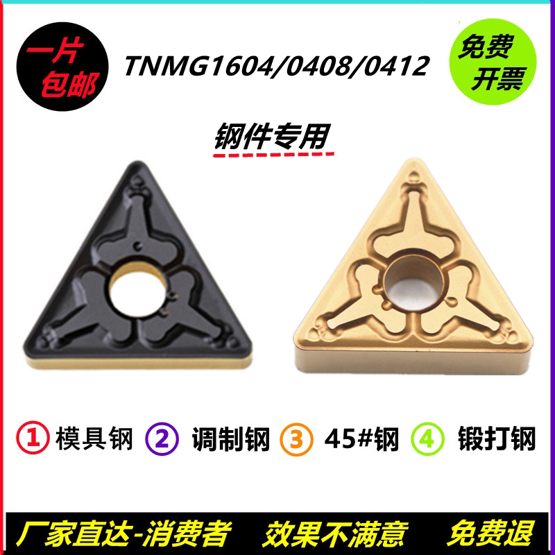 Imported bicolor coated notched outer circle triangular numerical control car blade TNMG160404-160408-TM steel piece