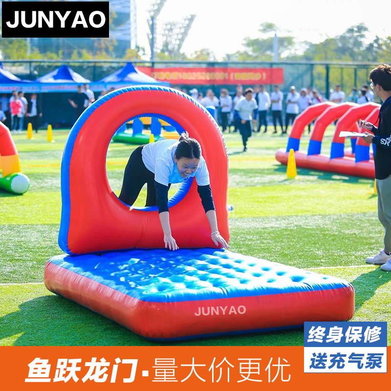 Double-layer inflatable large hurdles thickened single-layer inflatable small hurdles thickened fun drill hole thickened fish leap dragon gate thickened bilateral balance beam thickened unilateral balance beam thickened obstacle four-piece set (regular style) four-piece obstacle