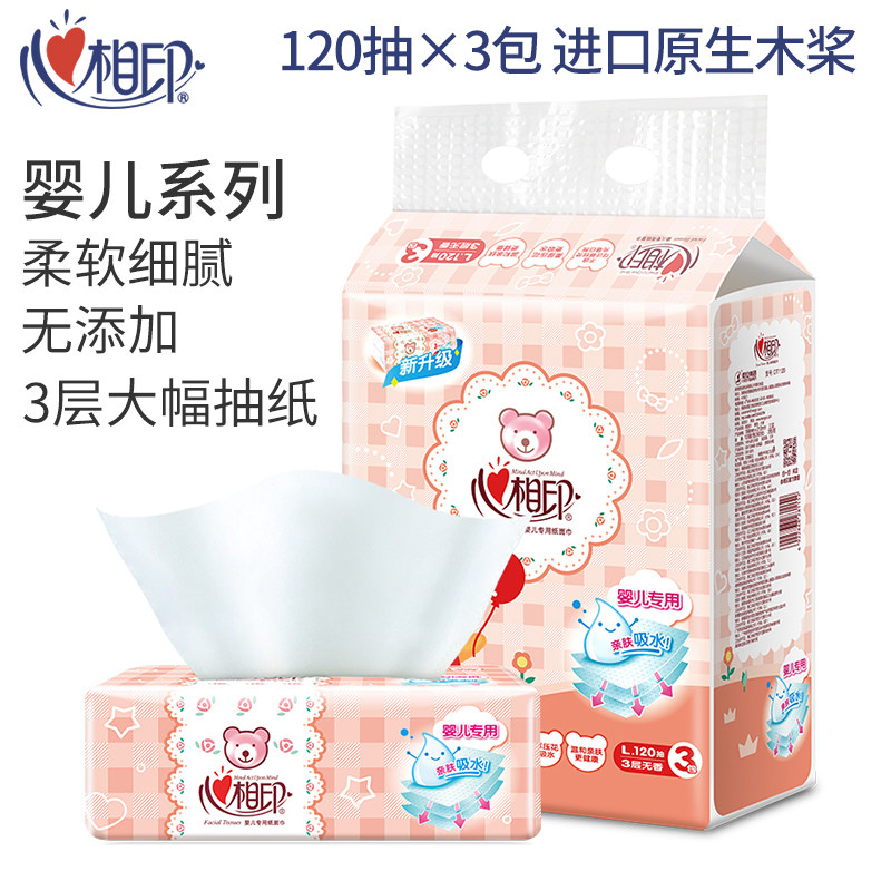 Heart printing Baby series extraction toilet paper 3 layers 120 draw baby with facial tissue paper towel for baby baby tissue