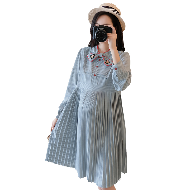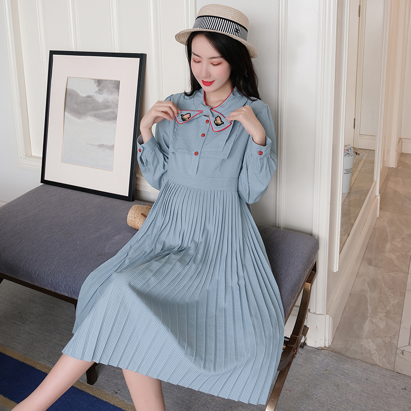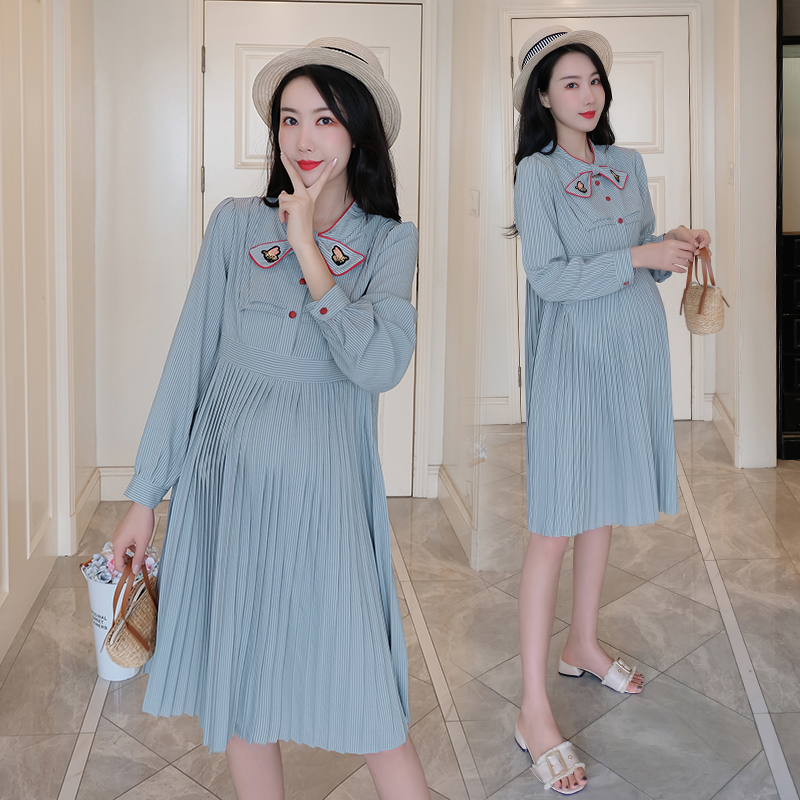 Pregnant woman shirt with long version of pregnancy gestation gestation Pregnancy Mother Tide Dress Shirt Dress Fall 2019 New shirt Han version loose