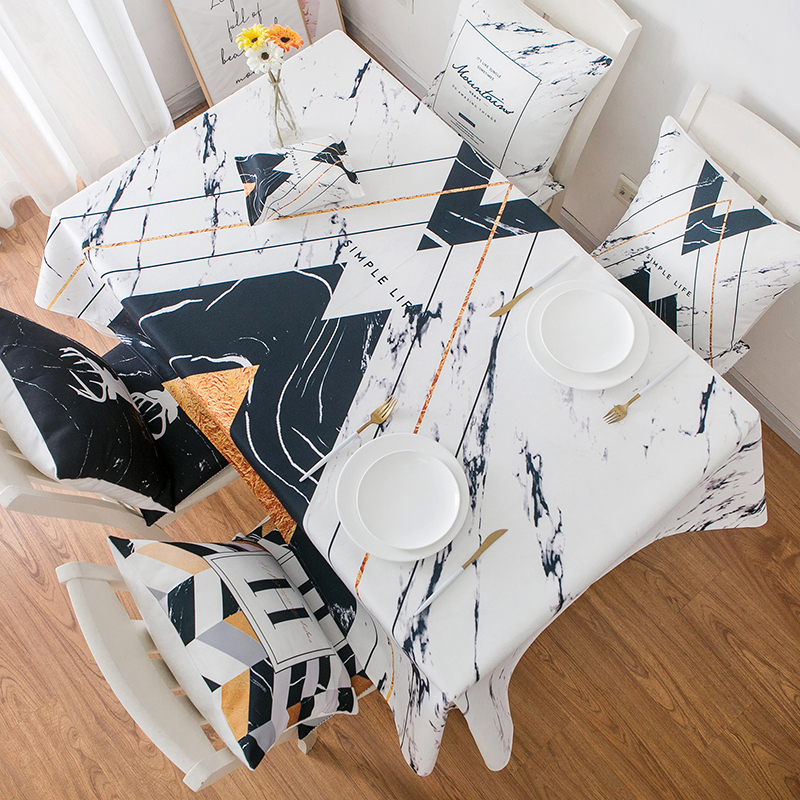 Black gold thickened cotton linen tablecloth marbled rectangular table table cloth ins Nordic coffee table cover scarf cloth
