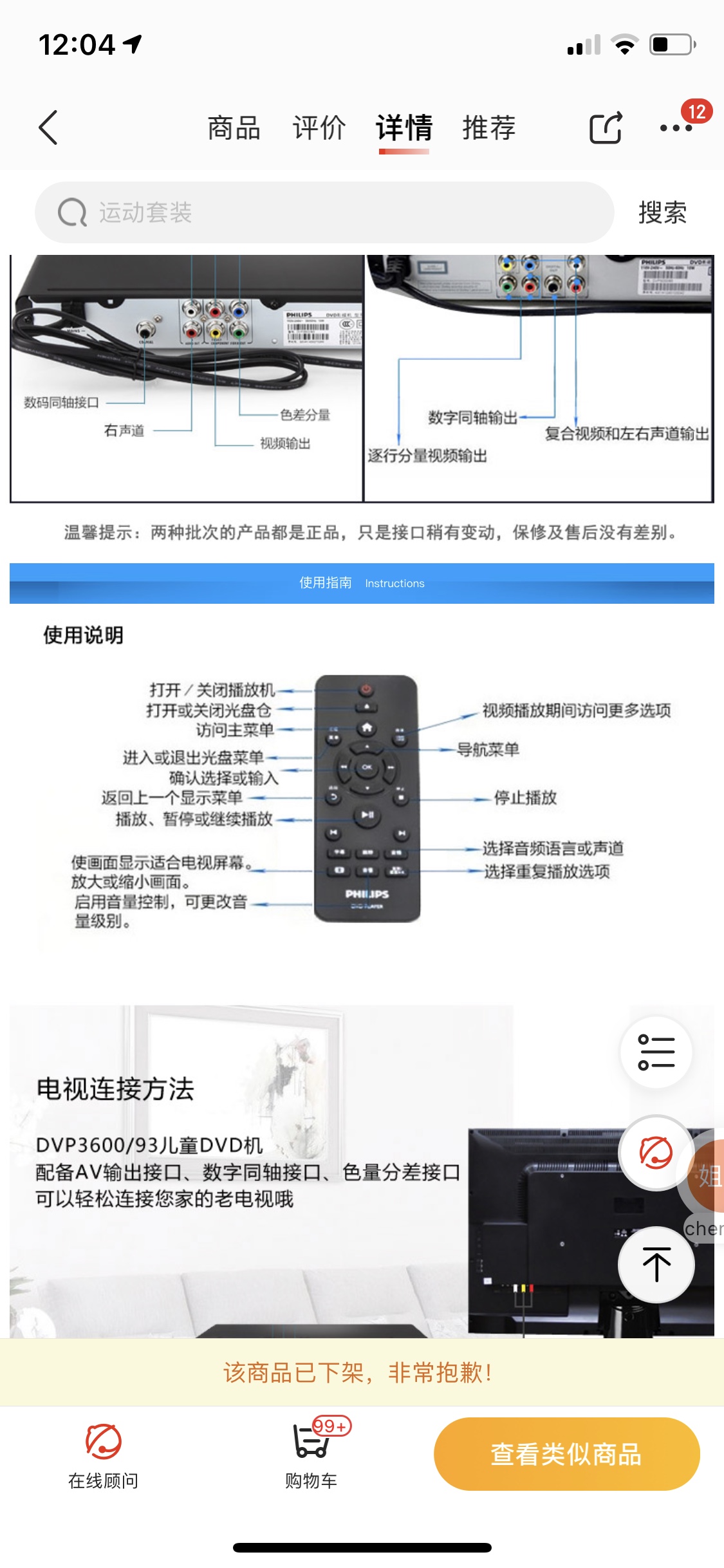 Original Philips DVP3600 DVP3006 DVP3680 93DVD player remote control