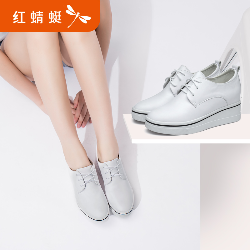 Red dragonfly women's shoes 2022 autumn leather casual leather shoes women's sports thick bottom all-match small white shoes