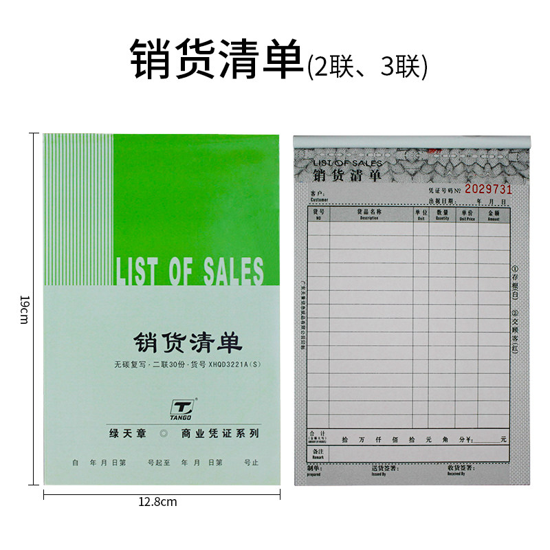 Green Tianzhang Sales List 32K Shipping receiving collection Single Two Union Triple No carbon rewritten warehouse goods documents