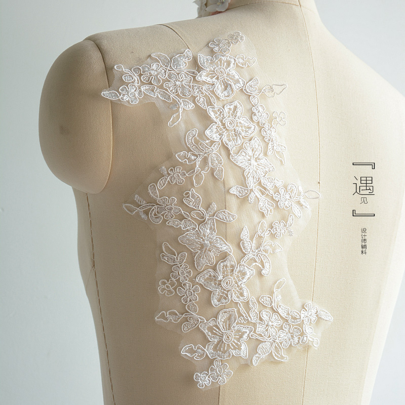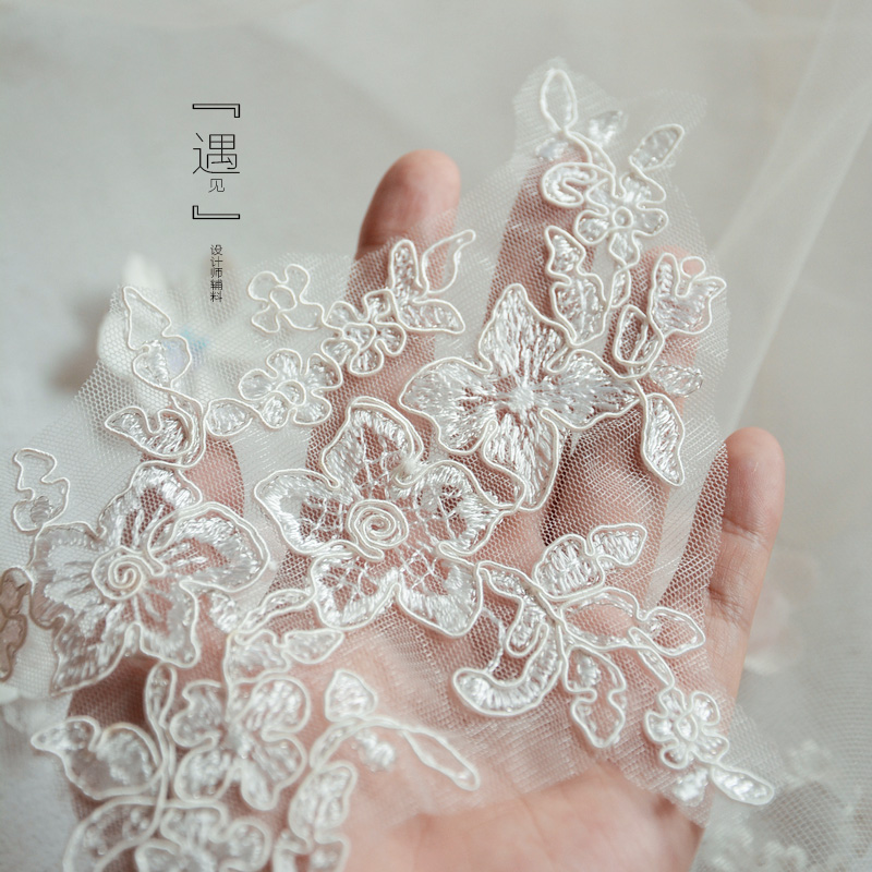 Wedding dress accessories applique handmade veil decoration garment applique accessories ivory white car strand silver thread