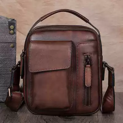 Retro Baotou layer cowhide men's small bag handmade leather bag men's leather men's bag messenger bag men's shoulder bag men's casual