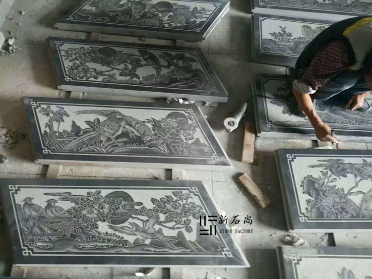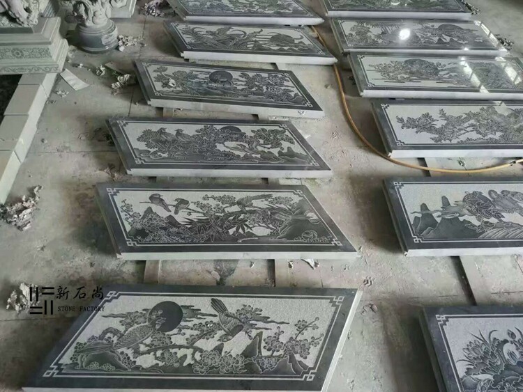 Line carving temple ancestral hall wall line carving Mongolian black ash stone line carving