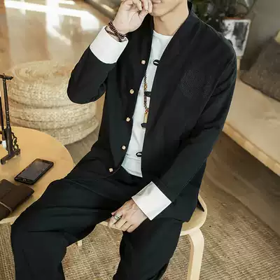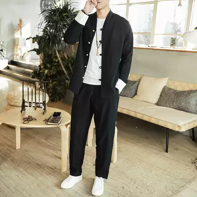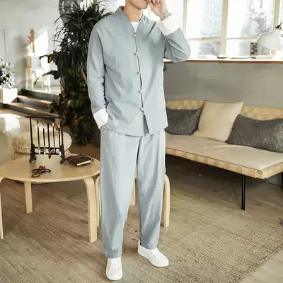 Tang costume men's youth linen suit Chinese style men's Chinese style clothing Zen clothing costume Hanfu retro style fashion brand