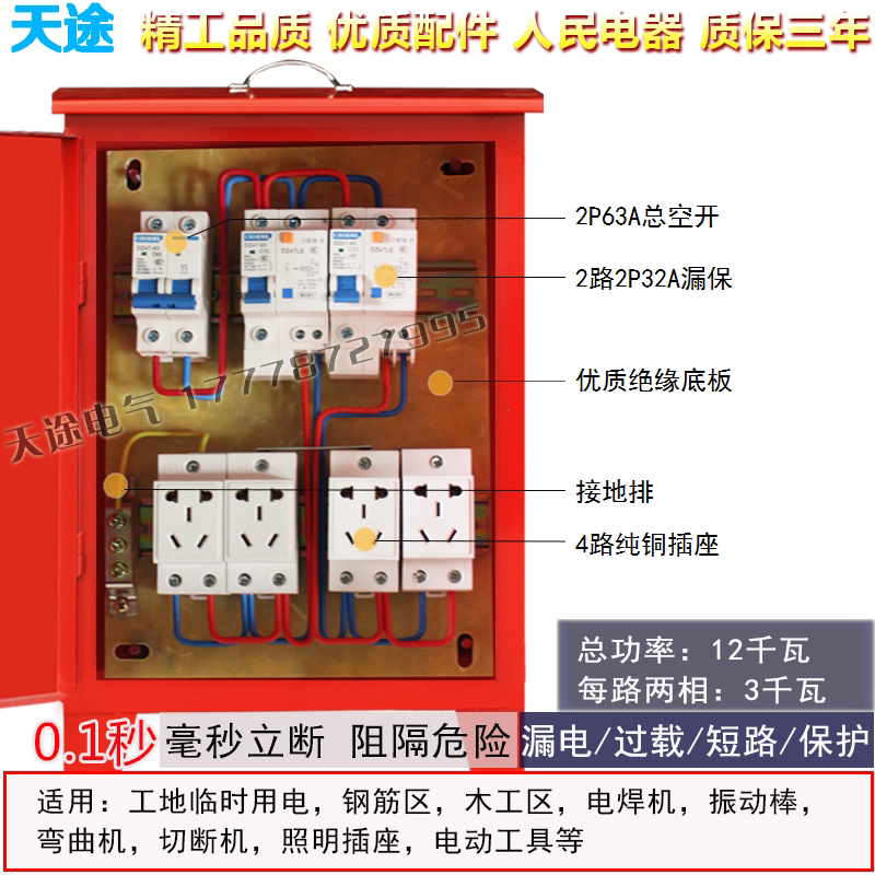 Construction site temporary electrical box 220v outdoor rain-proof handheld mobile lighting 5-hole socket to renovate tertiary distribution box