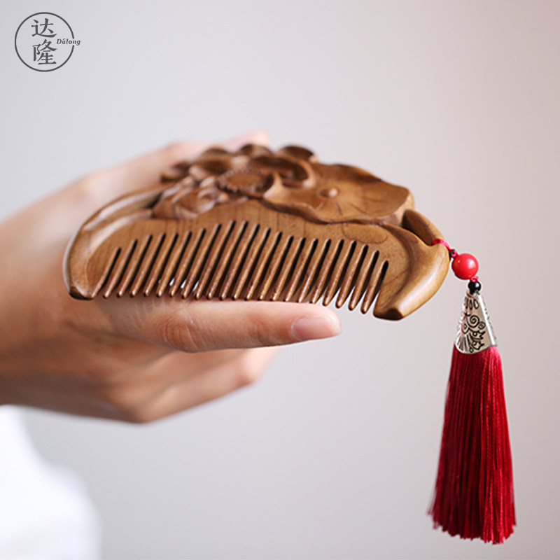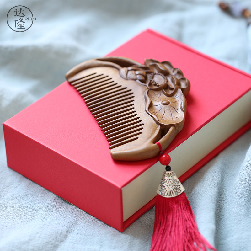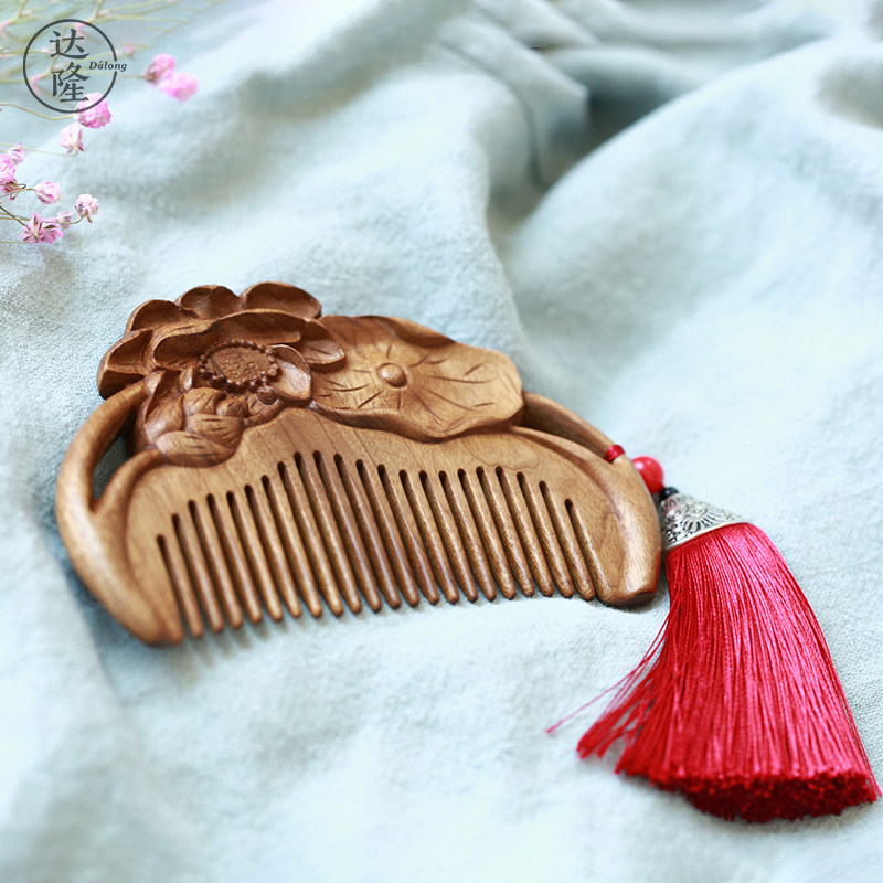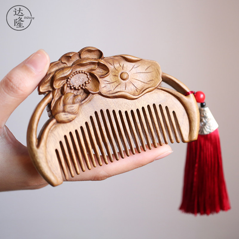 Dalong (lotus wood comb)Golden silk Nanmu comb comb Natural wood comb Creative gift for girlfriend and best friend