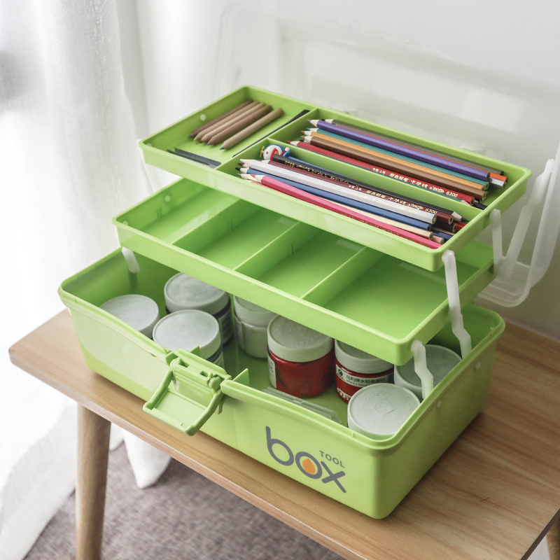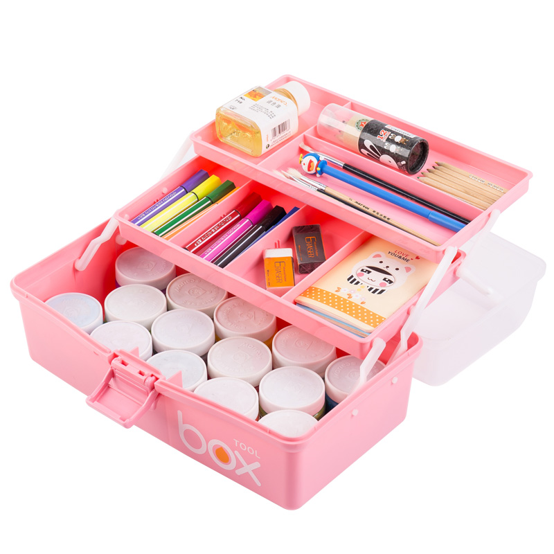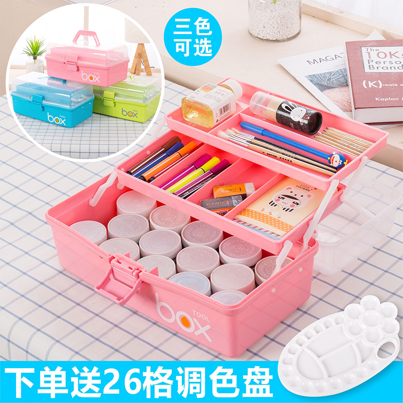 Three-layer handheld art supplies toolbox multifunctional large-scale children's pupil water powder painting collection box