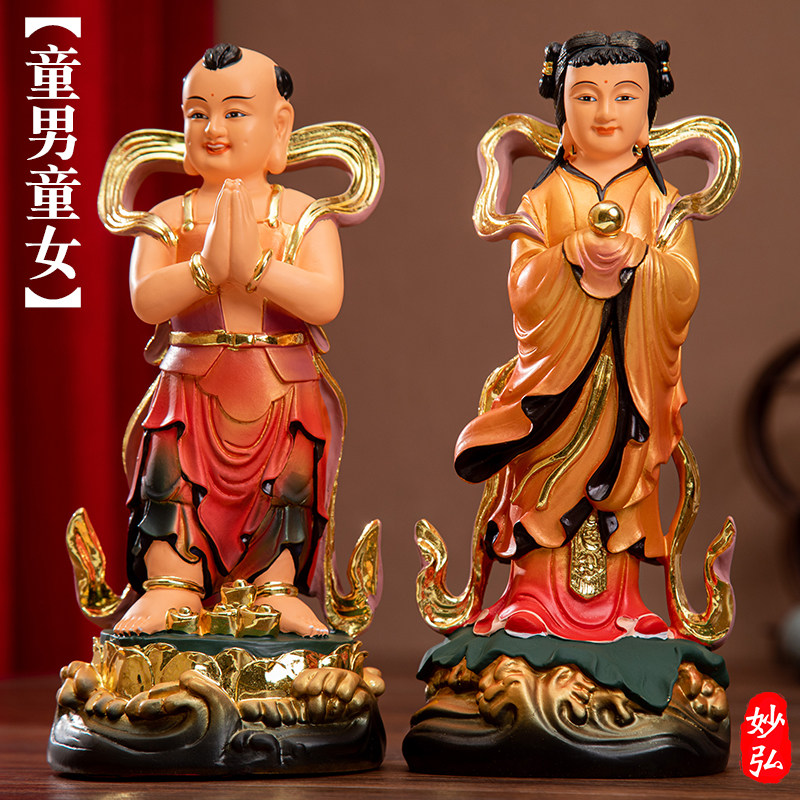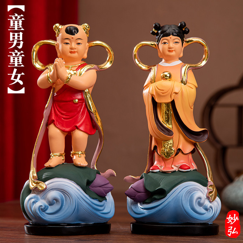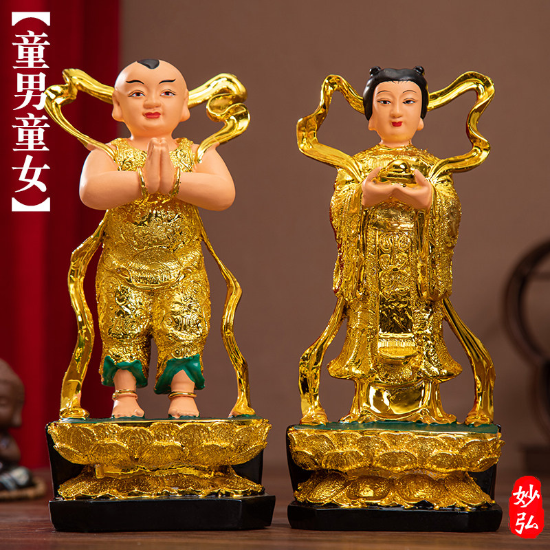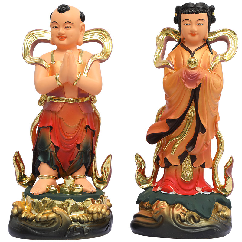 Dedicated to the statue of the lucky boy, the virgin, the resin buddha statue, the golden boy, the jade girl, the good fortune boy, the dragon girl, the Guanyin disciple statue