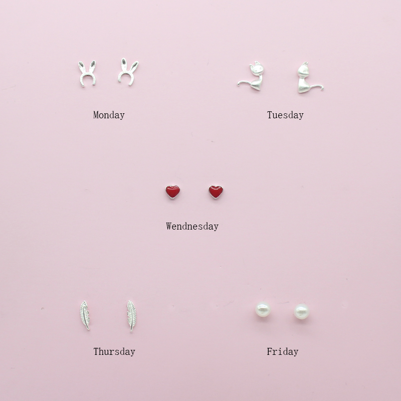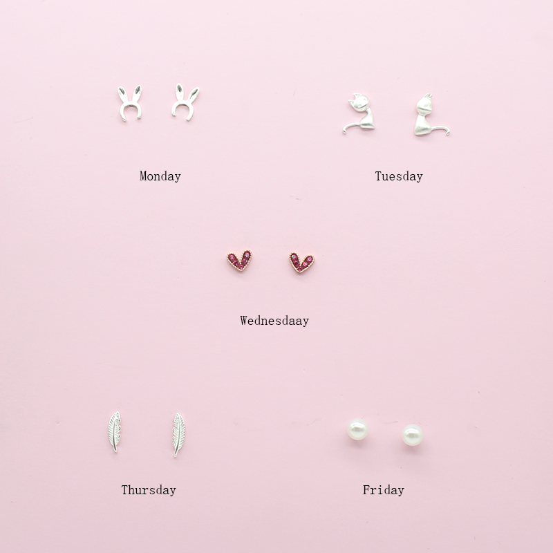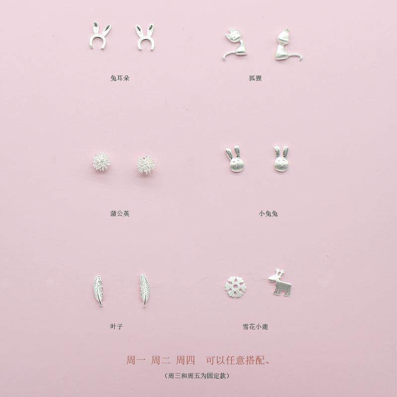 S925 Silver Ear Round Weekly Set with Korean Class Small and Miniature Ear Fall Student Gift Girl