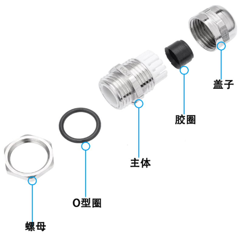 Metal cable waterproof connector fixed seal grid head brass nickel-plated M12M16M20PG7 11 13 5