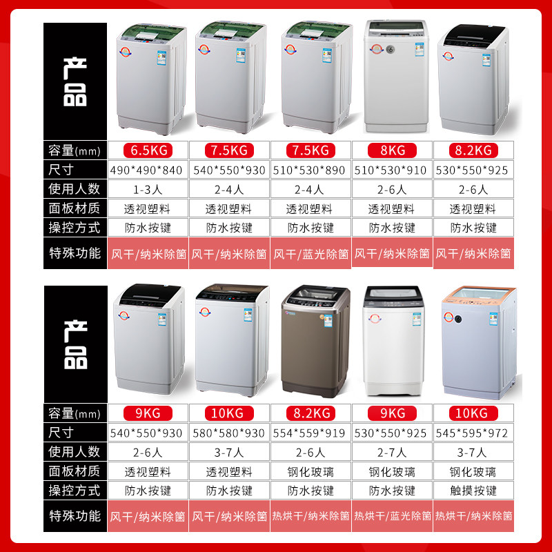 8 kg strong air-drying loss impulse 8 kg Strong air-drying nano anti-static 9 kg Strong air-drying ten-year warranty 5 kg double cylinder semi-automatic 5 2 kg ordinary 5 2 kg upgrade