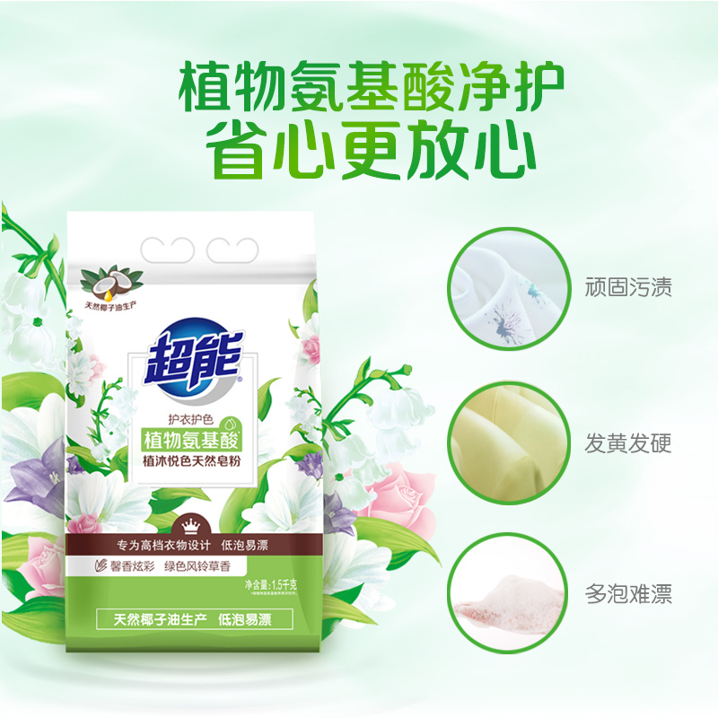 Ultra-energy plant Delight Color Natural Soap Powder 1 5kg * 2 sacks 6 catty Family Loaded Hand Wash Machine Wash Low blister Easy Rind Powder