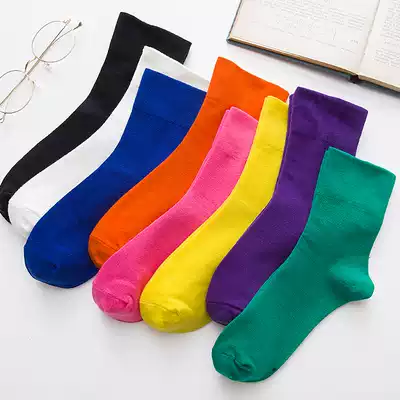 Autumn purple socks women's socks Korean version of college wind Net red Korean candy color socks ins tide Wild