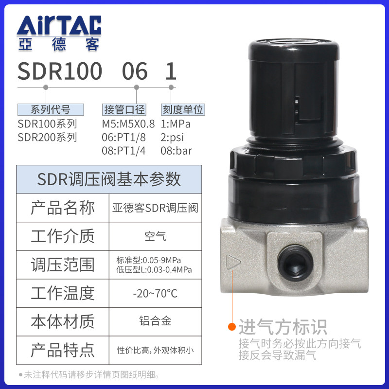 Yadke pneumatic pressure regulating valve air source pressure reducing air regulating valve SR200-06 SDR100 200-M5 08