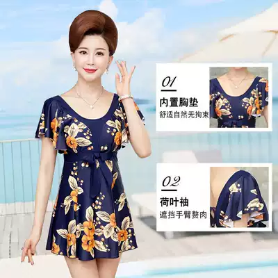 Swimsuit women's conservative mother one-piece hot spring belly cover, thin and fat, large size mother swimsuit for the elderly and the elderly
