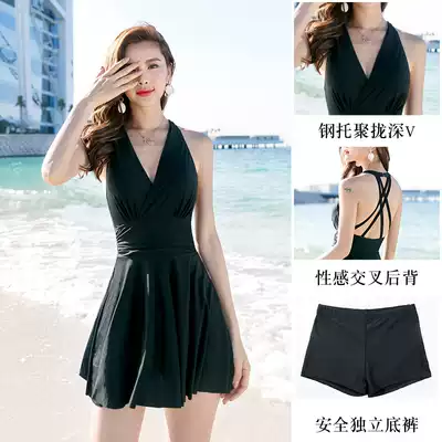 Luxury swimsuit women's vacation flat-angle conservative thin belly cover halter sexy Korean one-piece skirt style small chest gathered
