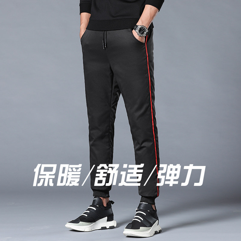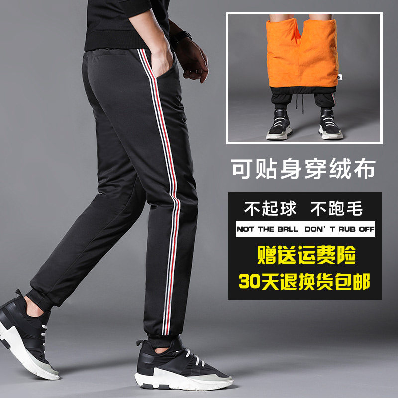 New men's outdoor thickened down pants male outside wearing body high waist Young students casual 90 white duck suede cotton pants