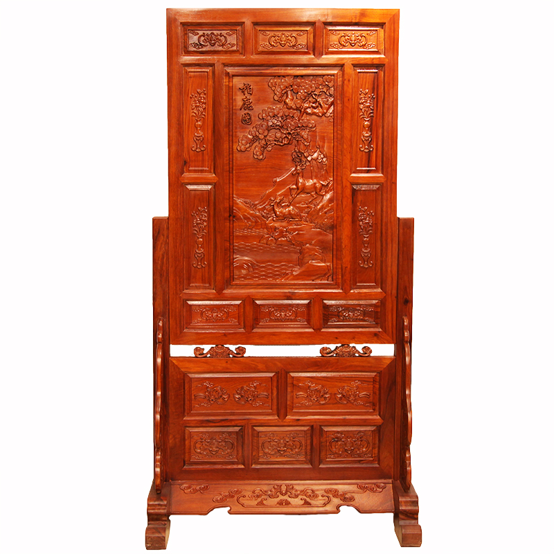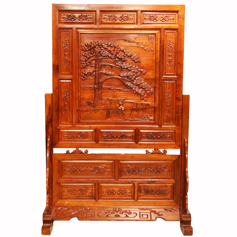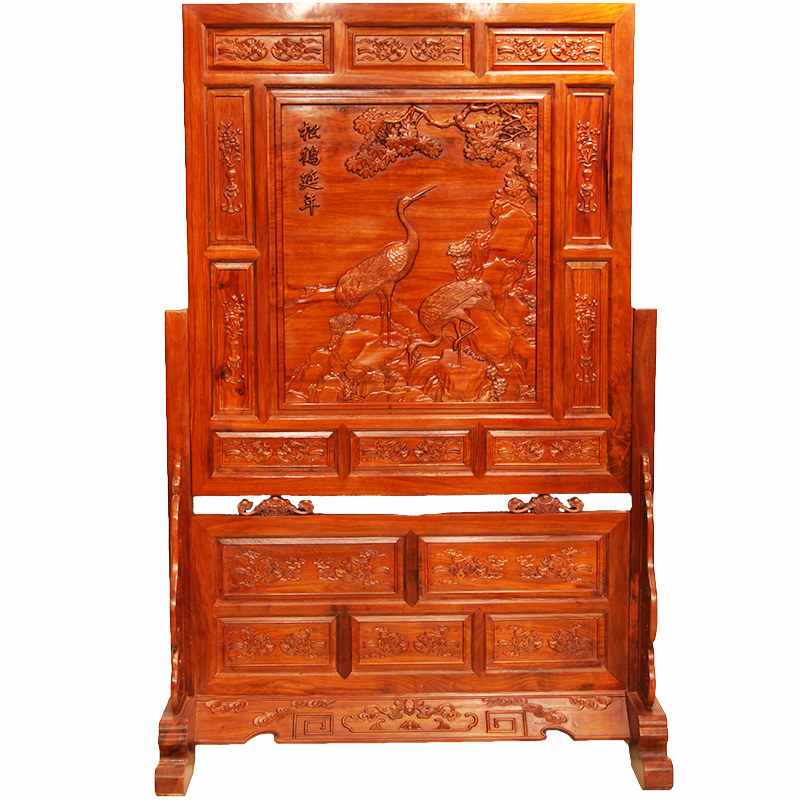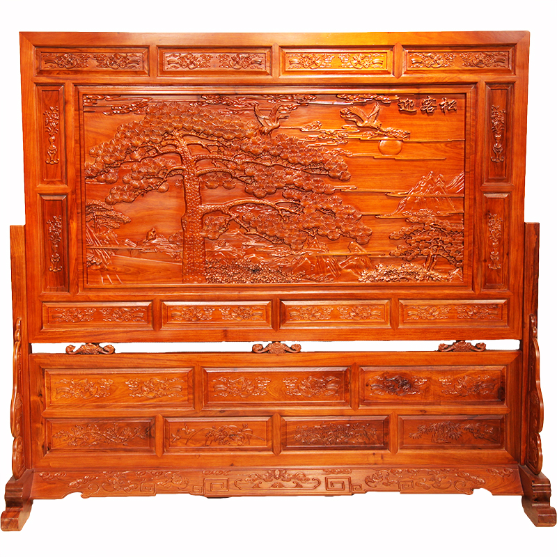 East Yang Wood Carving Screen Engraving Solid Wood Seat Screen Partition New Chinese Genguan Living-room Greeting Guest Pine Pine Cranes for an annual insertion screen