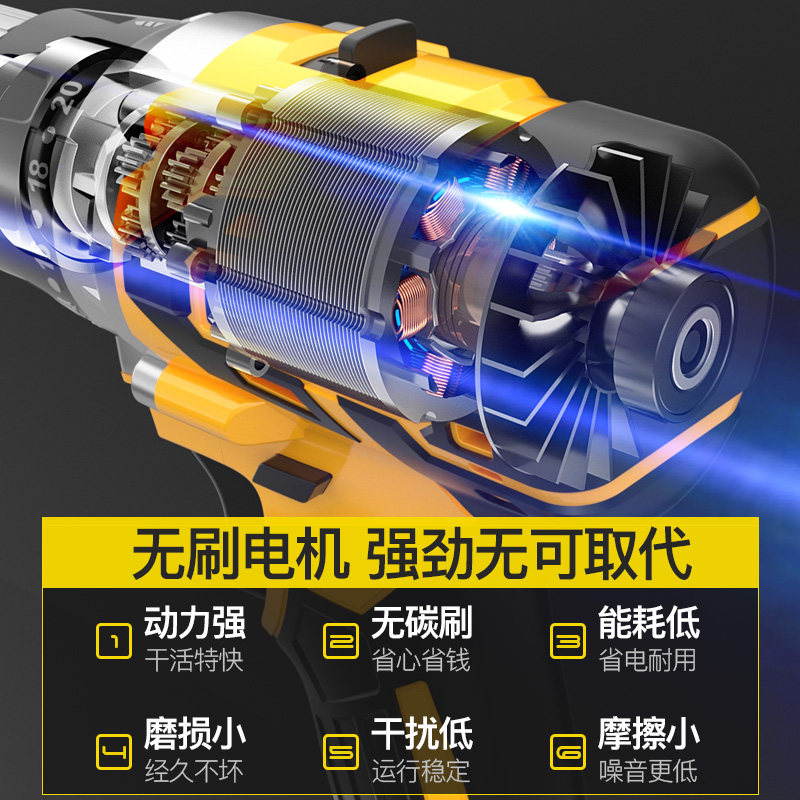 Hand electric drill Lithium electric brushless high power impact drill household multifunctional rechargeable hand drill electric screwdriver